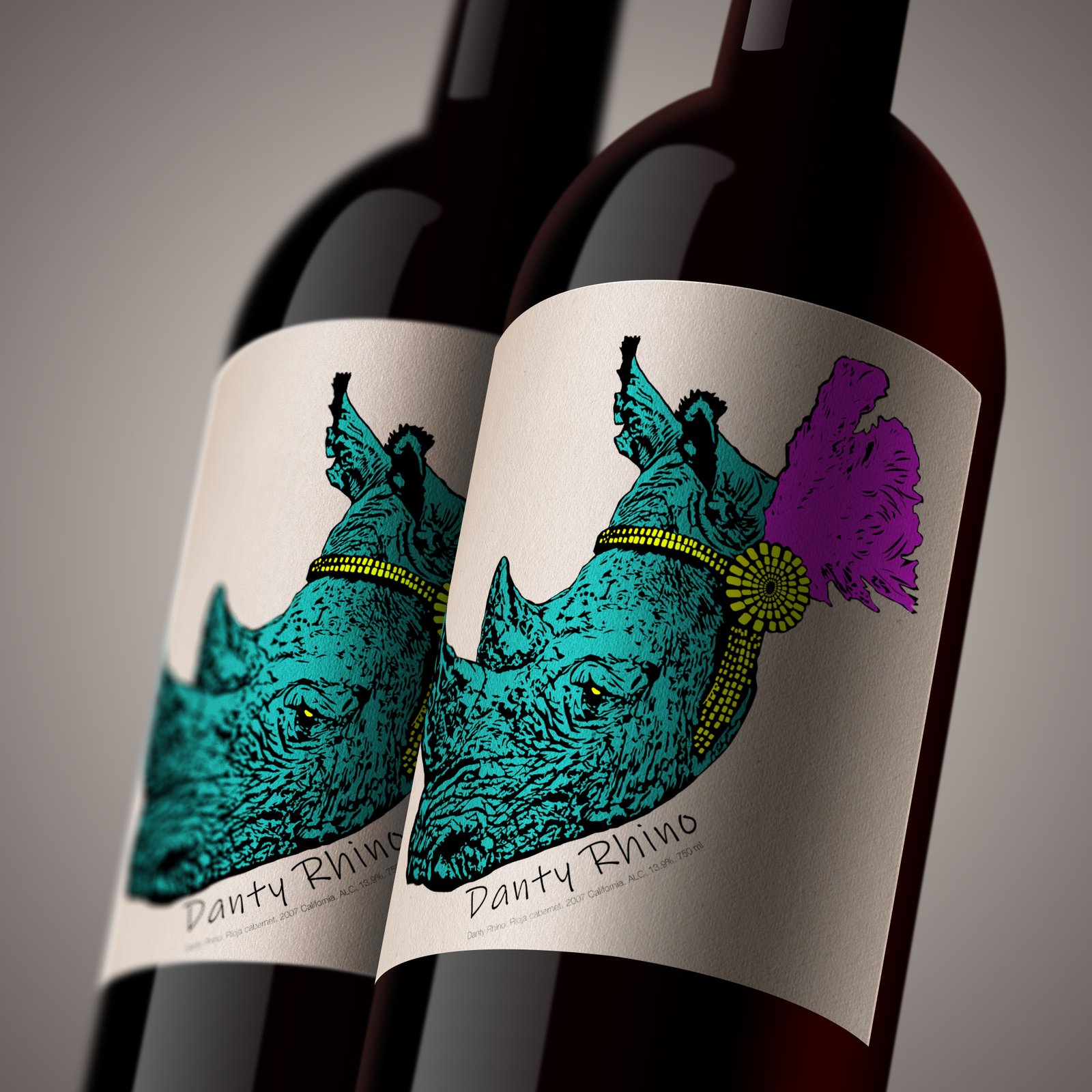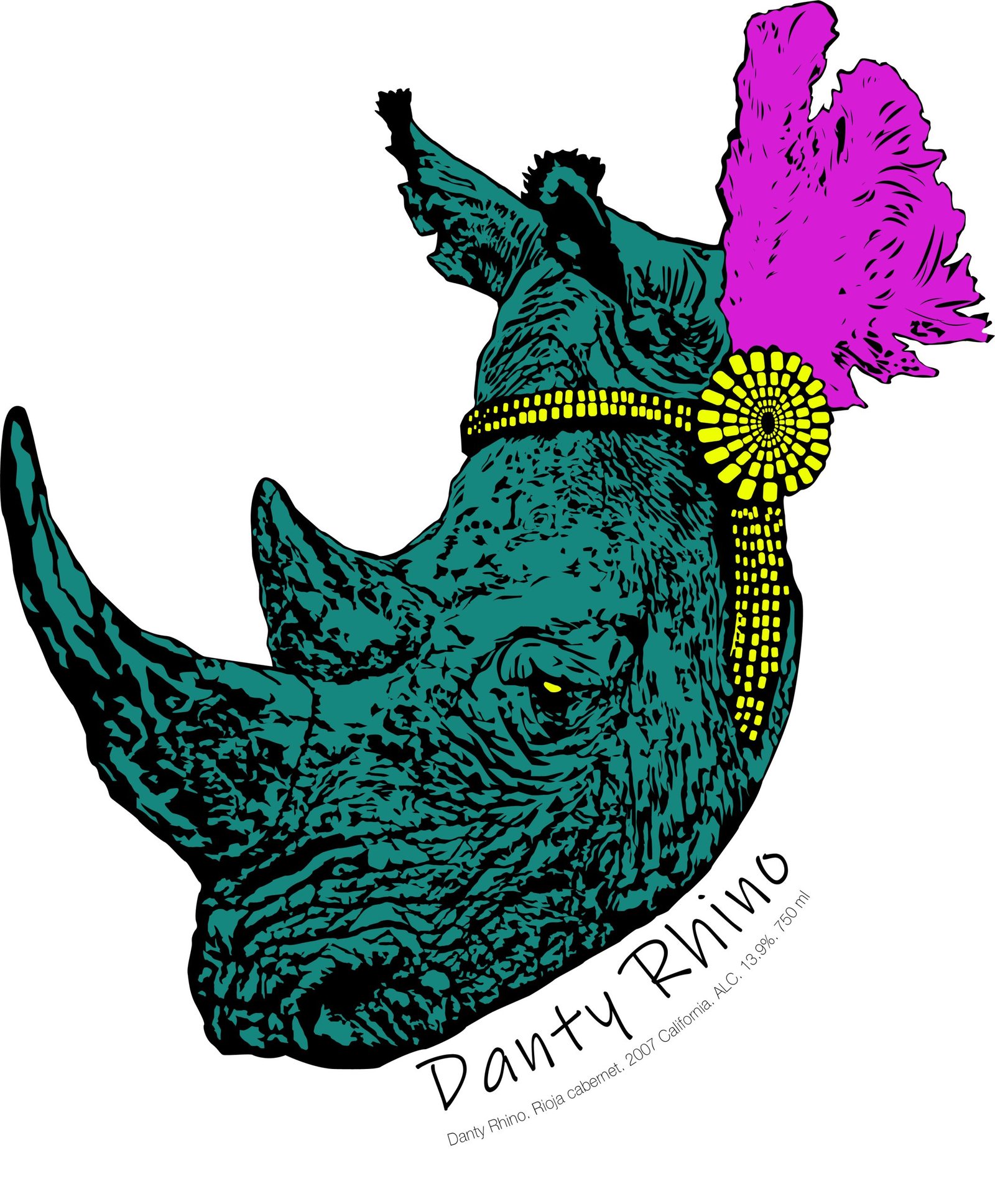 Vector Art – Dainty Rhino Wine Label Illustration